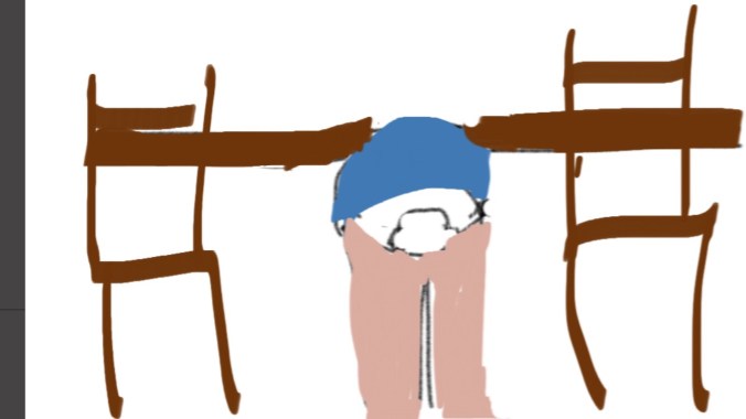 We watched as my mother bent at her waist to snatch up the rubber band… Seemingly forgetting she was in a jean skirt…! All we could see was a full moon of white underwear. Then the distinct opaqueness of her sanitary napkin with the lovely frame of it’s ‘wings’. Here is a quick drawing for a visual: