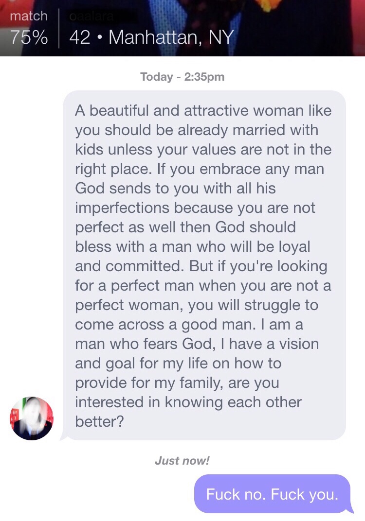 Before I get into it I want to discuss one of my favorite aspects of dating; receiving a notification that I have a new message in my inbox. I love getting messages. Before I open them, there is always the possibility of the future, but more often than not, I discover a cringeworthy diatribe waiting for me. In my opinion, the last one is the cherry on top, the pièce de résistance. Here are the examples: